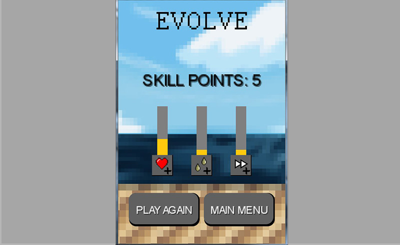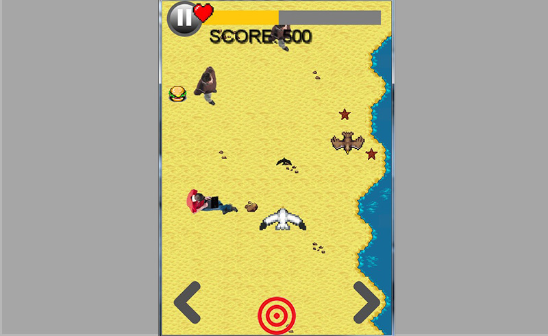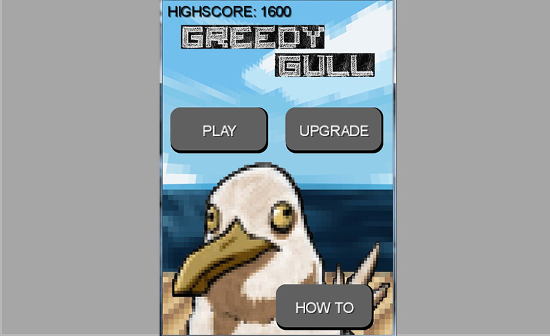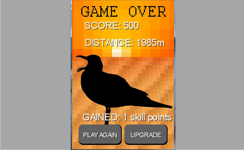 Greedy Gull is a top down scrolling shooter where the player guides the seagull along a beach hitting as many targets as they can until their stamina runs out. The primary goal is to reach the highest score possible which is gained with each target hit. Upon a completed round the player is awarded skill points based on their score to upgrade the gull’s persistent stats that are carried over to subsequent games. This persistent improvement makes surpassing the high scores more frequent and adds another goal of upgrading the gull. It draws primary influences from classic arcade shooters.